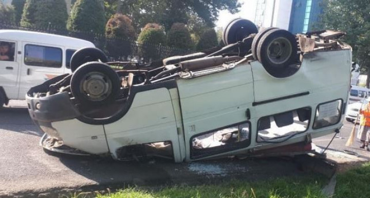 В результате аварии микроавтобус перевернулся, пострадали его водитель и шесть пассажиров, а также один пассажир Lacetti.