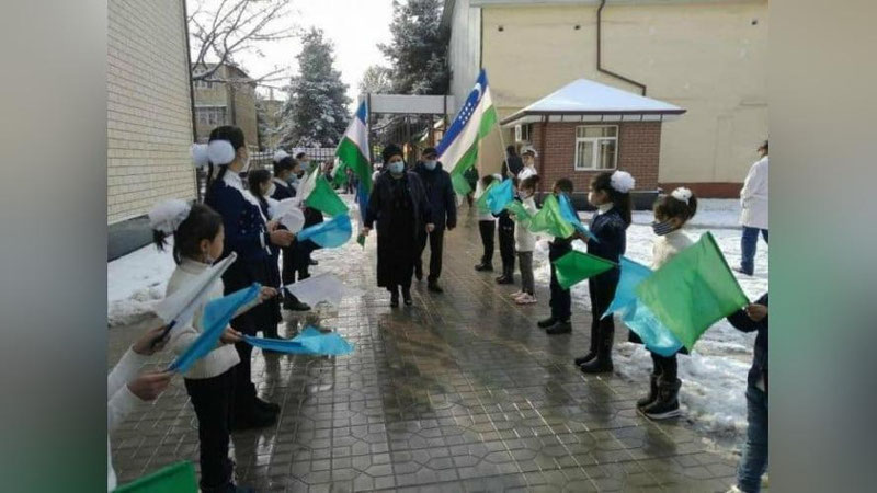 Ijtimoiy tarmoqlarda Andijondagi maktab o`quvchilari tashkil etilgan tadbirda ustki kiyimsiz tashqarida bayroq hilpiratib turgani aks etgan suratlar tarqaldi.