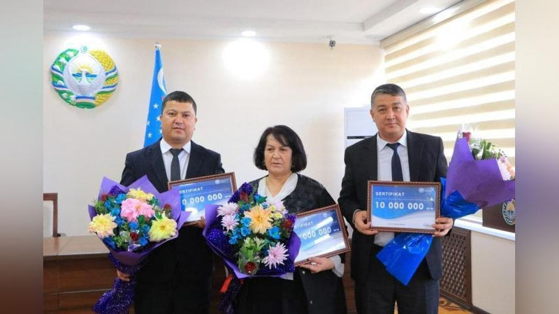 Viloyat hokimi ko`rsatkichlari namunali bo`lgan maktab direktorlariga 10 million so`mdan pul mukofoti topshirdi.
