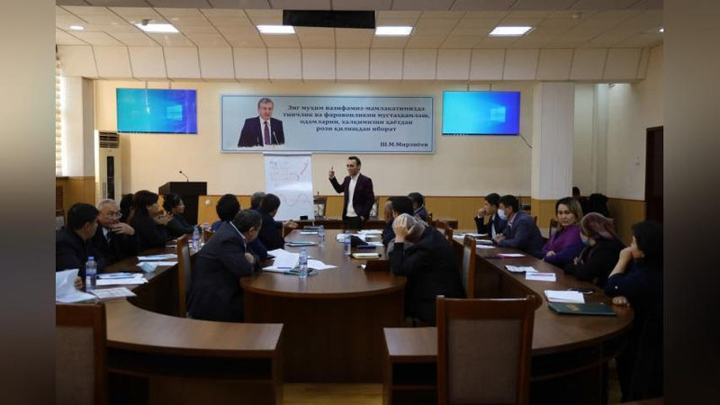 O`quv-trening dasturi mavzulari ishtirokchilar talab va ehtiyojlari “TNA” tahlilidan kelib chiqqan holda tuzilgan bo`lib, “Soft skills” yo`nalishi bo`yicha “Stressga chidamlilik” mavzusida amaliy trening mashg`uloti ham o`tkazildi.