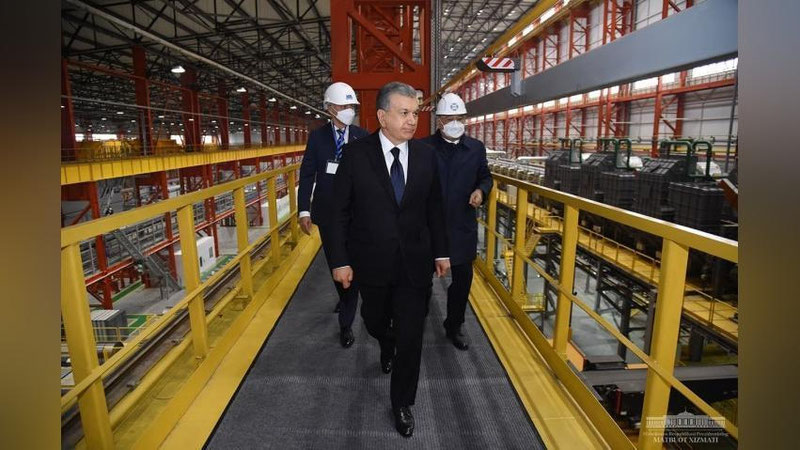 Davlat rahbari Shavkat Mirziyoev Toshkent metallurgiya zavodidagi texnologik jarayon bilan tanishdi.