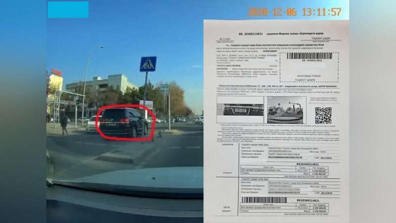 Video lavha o`rganilganda, joriy yilning 6- dekabr kuni soat 13:11larda, Toshkent shahar, Yunusobod tumani, Xurshid ko`chasida “TAYOTA LAND CRUISER” rusumli, 01 025 UZB davlat raqam belgili transport vositasi yo`lning qarama-qarshi bo`lagida harakatlanganligi atrofdagi fuqarolardan birining boshqaruvidagi transport vositasi videoregistratoriga qayd etilgan. Fuqaro qoidabuzarlik videosini "eJaerima" saytiga yuborgan. Saytga kelib tushgan video lavha Toshkent shahar ma`muriy amaliyot mas`ul xodimi tomonidan o`rganilgan.