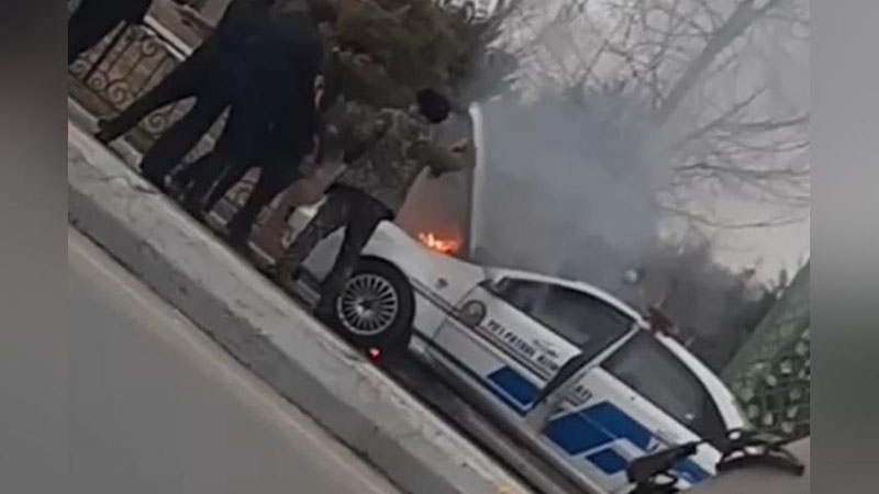 Ijtimoiy tarmoqlarda "Qarshi shahrida GAI avtomashinasi yonib ketdi" sarlavhasi ostidagi video lavha tarqaldi.