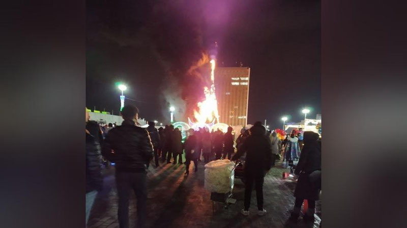 Ayni vaqtda Navoiy viloyat hokimiyati yonida o`rnatilgan archa yonib ketdi. Bu haqda ijtimoiy tarmoqlarda video lavhalar tarqaldi.