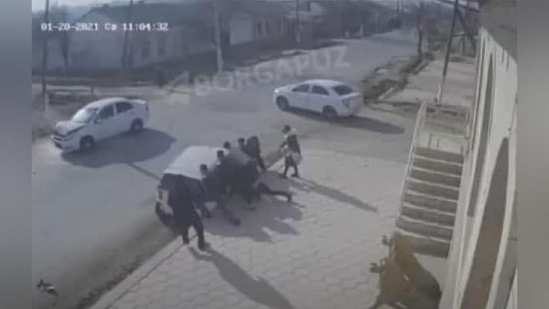 Samarqandda "Neksiya" urib yuborgan "Spark"ning ostida piyoda qolib ketdi (video)