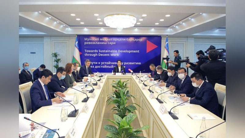 Tadbirda Oliy Majlis Senati Raisi T. Narbaeva, Xalqaro mehnat tashkiloti Bosh direktorining yordamchisi X. Koller hamda tegishli vazirlik va idoralar rahbarlari kirish so`zi bilan chiqish qildi.