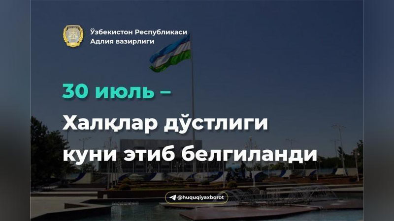 Qonun bilan 30 iyul – Xalqlar do`stligi kuni etib belgilandi.