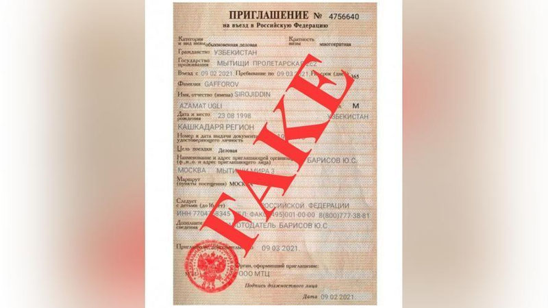Ijtimoiy tarmoqlarda O`zbekiston fuqarolarining vaqtincha mehnat faoliyati bilan shug`ullanish maqsadida Rossiya hududiga kirishi uchun ruxsatnoma olib berish bo`yicha xizmatlar taklif etilmoqda.
