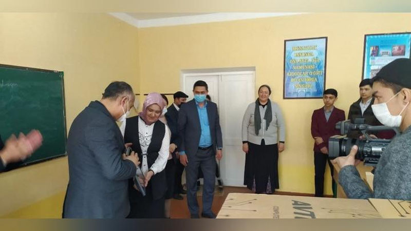 O`qituvchini trendga chiqargani uchun bloger Isroil Tillaboevga esa vazir tomonidan zamonaviy noutbuk taqdim etilgan.