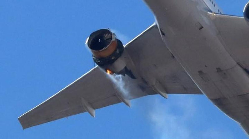 Tafsilotlar: United Airlines aviakompaniyasining samolyoti 20-fevral kuni kechqurun Denverdan havoga ko`tarilib, Gavayi shtatining Honolulu tomon yo`l olgan. Ammo havoga ko`tarilgandan so`ng darhol uning o`ng dvigateli yonib uning ba`zi qismlari erga tushib ketdi.