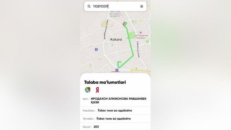 Mazkur ishlar doirasida yangilikka qo`l urilib, elektron ilova yaratildi. Ilova ijarada yashaydigan talabalar haqida to`liq ma`lumot olish, ularning manzillarini xaritada ko`rsatib berish, ijara manziliga qadar boshlab borishi bilan talabalarning ustoz-murabbiylari, ota-onalari, institut rahbariyati uchun beminnat yordamchi bo`ldi.