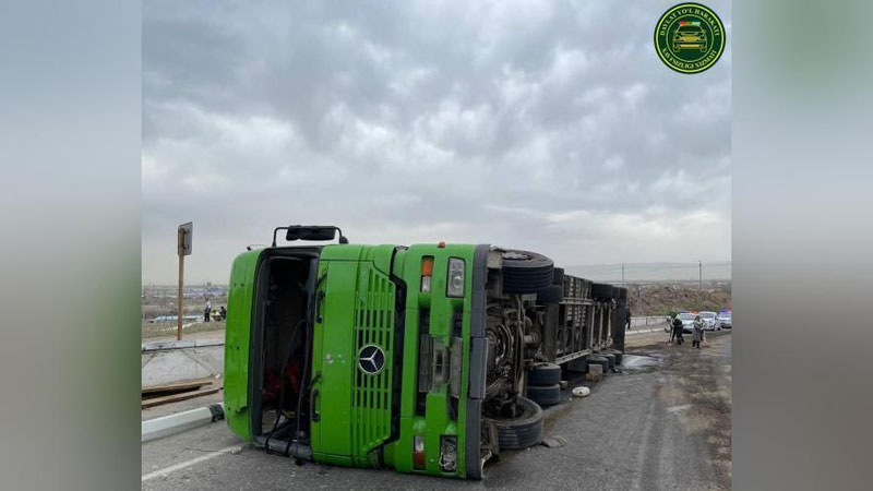 Samarqandda yuk avtomobili ag`darilib ketdi(foto)