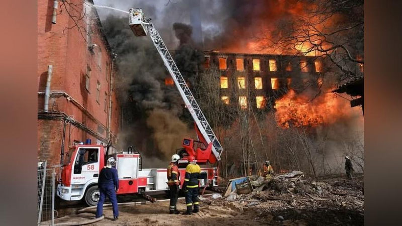 Sankt-Peterburgdagi qadimiy fabrika yonib ketdi. (Fotoreportaj)