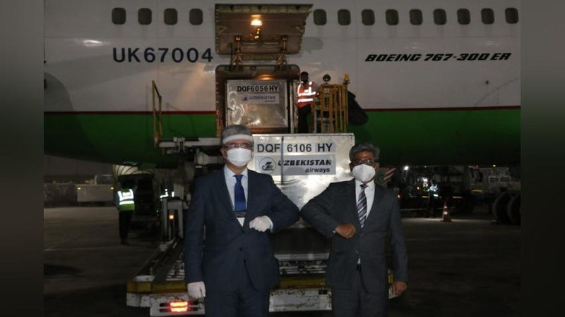 Mobil kislorod konsentratorlari to`plamlari, ehtiyoj yuqori bo`lgan turli dori vositalaridan tarkib topgan insonparvarlik yuklari Dehli aeroportida mamlakatimizning Hindistondagi elchisi Dilshod Axatov tomonidan mazkur mamlakat Qizil Xoch jamiyati va Tashqi ishlar vazirligi rasmiy vakillariga topshirildi.