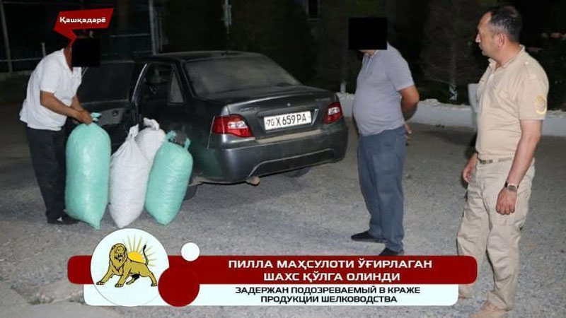 Joriy yilning 25 may kuni tungi soat 23:00 da Kitob tumani “Beshterak” MFY hududidagi “Mash`al” blok postida o`tkazilgan ushbu tadbirda davlat raqami 70 X 659 RA bo`lgan “Neksiya” rusumli avtomashina to`xtatilib ko`zdan kechirilgan va uning salonidan 7 ta qopda umumiy hajmi 83 kg bo`lgan pilla mahsuloti borligi aniqlandi.