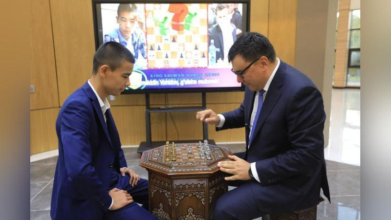 Aziz Abduhakimov avvalo yosh shaxmatchimizni bunday ajoyib g`alabaga erishganligi bilan samimiy muborakbod etdi hamda Shamsiddin kabi iste`dodli yoshlar ertamiz egalari uchun namuna bo`lib xizmat qilishi, qanchadan-qancha yoshlar ularga o`xshashga intilishini ta`kidladi.