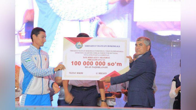 Sirdaryo viloyati hokimi G`ofurjon Mirzaev tadbirda dunyoning eng nufuzli sport anjumanida qatnashish huquqini qo`lga kiritgan sportchilar Server Ibragimov (o`q otish), Shahboz Xolmirzaev (akademik eshkak eshish) hamda Safina Sa`dullaeva (engil atletika)larni ulkan muvaffaqiyat bilan samimiy tabriklab, ularning har biriga viloyat hokimligi tomonidan 100 million so`mdan pul mukofoti hamda qimmatbaho sovg`alar topshirildi. Shuningdek, hokim taqdirlash marosimida Olimpiada o`yinlarida g`olib va sovrindor bo`lib qaytgan sportchilar xonadon hamda qimmatbaho sovg`alar bilan taqdirlanishi haqida ham e`lon qildi.
