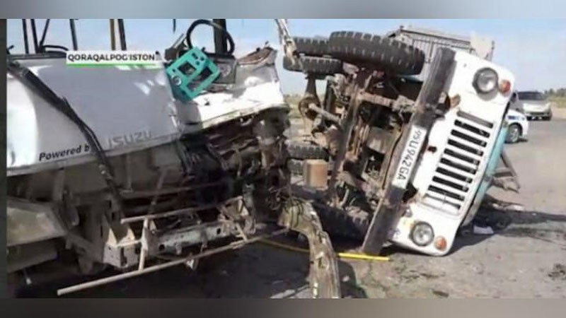Qoraqalpog`istonda Isuzu yuk tashuvchi mashinaga borib urildi. Vafot etganlar bor(video)
