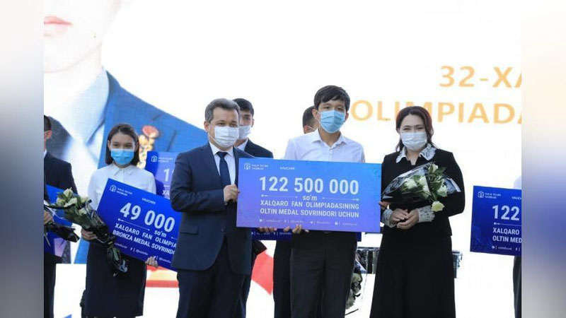 Prezidentimiz qaroriga ko`ra oltin medal sohibiga 122 mln so`m, uning ustoziga 110 mln so`m mukofot beriladi.