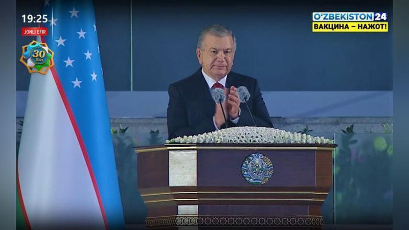Avval xabar berganimizdek, “Yangi O`zbekiston” bog`ida davlatimiz mustaqilligining 30 yilligiga bag`ishlangan tantanali tadbirda Prezidentimiz Shavkat Mirziyoev butun xalqimizga Vatanimiz istiqlolining shonli sanasi – davlatimiz mustaqilligining 30 yilligi munosabati bilan tabrik yo`llamoqda.