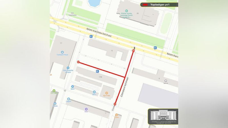 Toshkent shahar hokimligi bergan xabarga ko`ra, cheklovga yo`l ta`mirlash ishlari olib borilishi sabab bo`lgan.