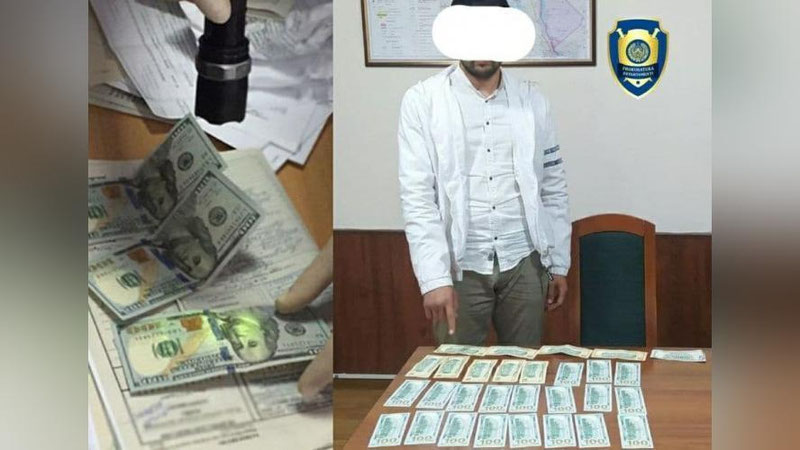 Bosh prokuratura huzuridagi Departamentning Bog`ot tuman bo`limi tomonidan o`tkazilgan tezkor tadbirda, fuqaro T.R. boshqa bir fuqaro U.ning ishonchiga kirib, uning qo`shni Qirg`iziston Respublikasi universitetidagi o`qishini 2 500 AQSh dollari evaziga Urganch davlat universitetiga ko`chirib berishni va`da qilib, shundan 2 000 AQSh dollarini olgan vaqtida ashyoviy dalillar bilan ushlangan.