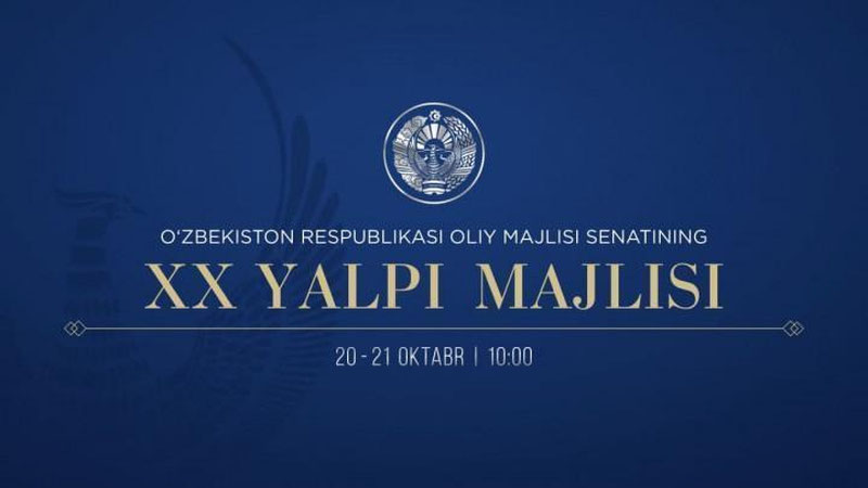 Ertaga, 20 oktyabr kuni O`zbekiston Respublikasi Oliy Majlisi Senatining yigirmanchi yalpi majlisi videokonferensaloqa tarzida o`tkaziladi. Bu haqda Oliy Majlisi Senatining Axborot xizmati ma`lum qildi.