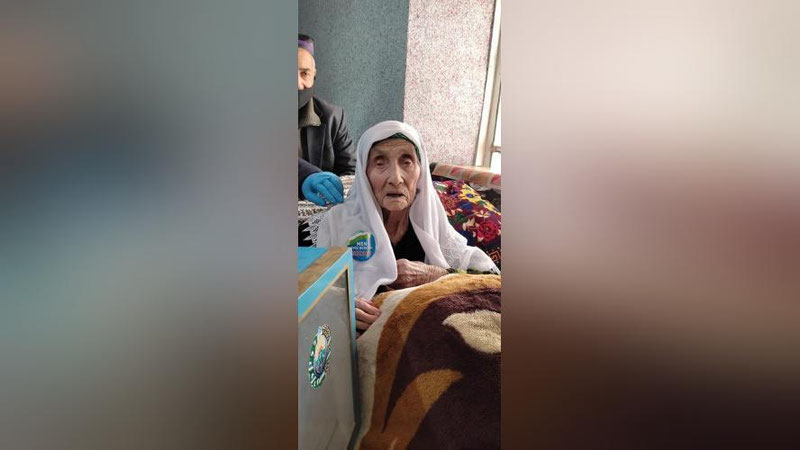 So`x tumanida yashovchi 112 yoshli Muharram Qosimova ham Prezidentlik saylovida ishtirok etdi.