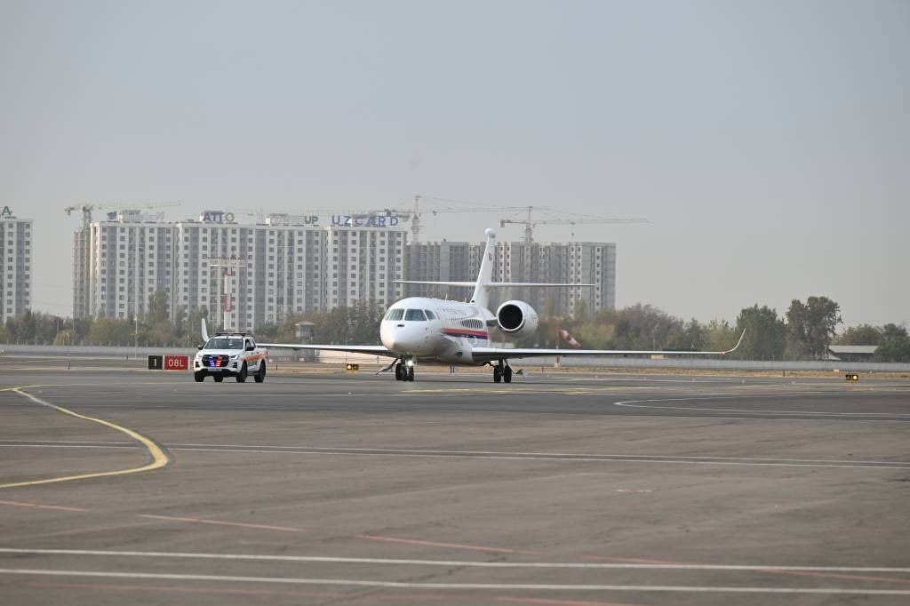 Oliy martabali mehmonni Toshkent xalqaro aeroportida O‘zbekiston Respublikasi Bosh vaziri A.Aripov va boshqa rasmiylar kutib oldi.