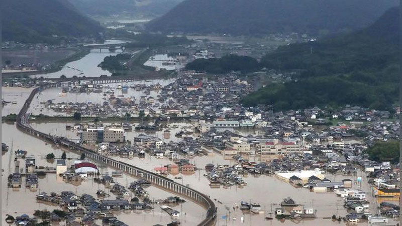 Juma kuni boshlangan yog`ingarchilik ikki sutka davomida tinmadi, ba`zi bir tumanlarda suv sathi uylarning ikkinchi qavatiga qadar ko`tarilgan, odamlar jon saqlash uchun tomlarning ustiga chiqib, yordam so`rashmoqda. Tabiiy ofat oqibatlarini tezkorlik bilan bartaraf etish uchun Yaponiya hukumati tezkor hukumat shtabini tashkil etishdi.