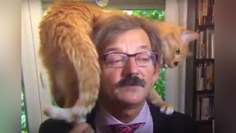 Polshalik tarixchi va publisist Eji Targalskiy intervyu berayotgan payt uning mushugi suhbatning beliga tepdi, deya xabar qildi Snob.ru nashri.