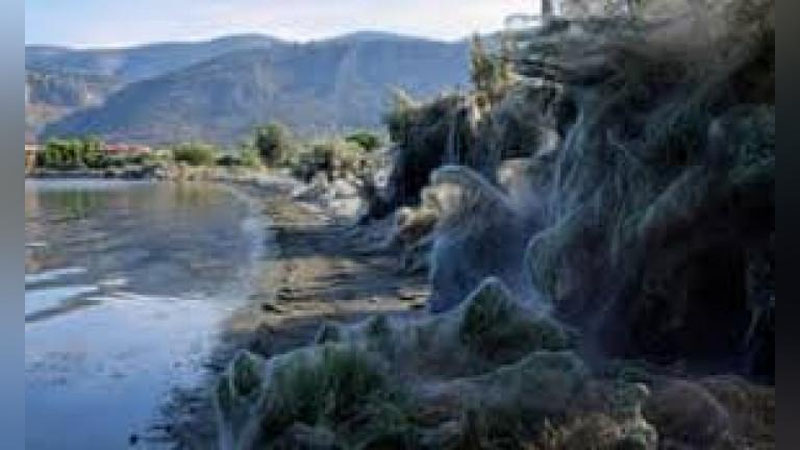 Gresiyaning shimoli-sharqidagi Vistonida ko`li sohillarini o`rgimchak to`ri qoplamoqda, deb xabar bermoqda RT nashri.