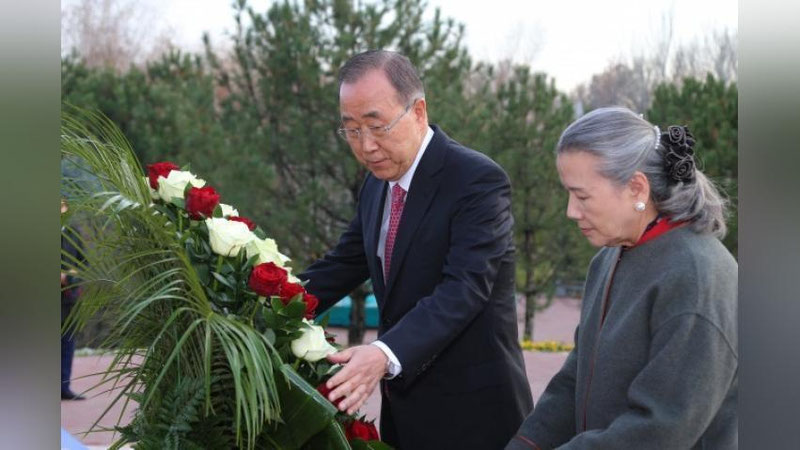Pan Gi Mun O`zbekiston Respublikasining Birinchi Prezidenti Islom Karimov haykali poyiga gul qo`ydi.