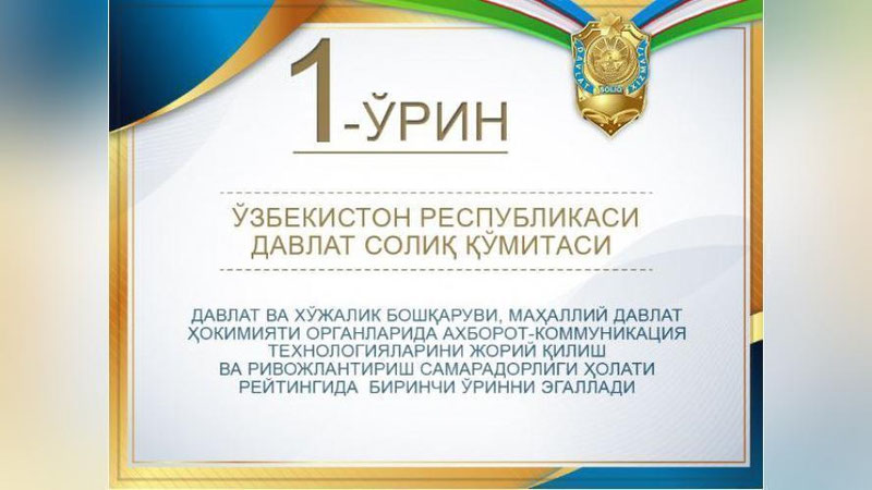 2018 yilning so`nggi choragi yakunlari bo`yicha 104 ta davlat va xo`jalik boshqaruvi, mahalliy davlat hokimiyati organlari o`rtasida axborot-kommunikasiya texnologiyalarini joriy qilish va rivojlantirish samaradorligi reytingi o`tkazilib, unda Davlat soliq qo`mitasi eng yuqori ko`rsatkich — 98,44 ball bilan 1-o`rinni egalladi.