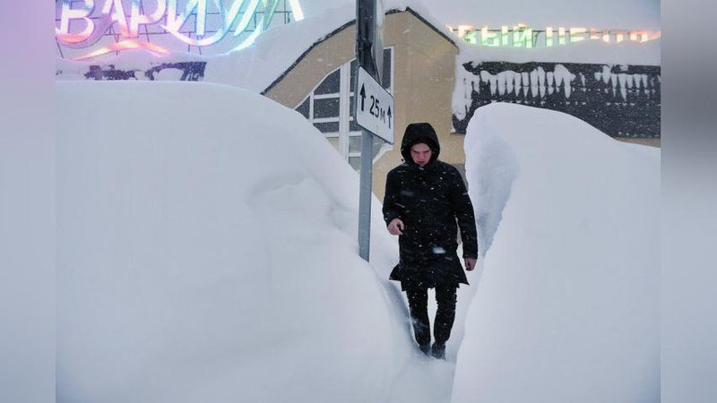 За неделю непрерывного снегопада и ветра в городе выросли сугробы выше человеческого роста.