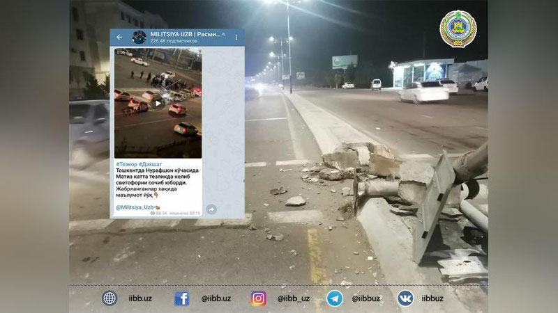 8 декабря 2020 года примерно в 00:10 часов на пересечении улиц Нурафшон и Согбон 44-летний К.Д., управляя автомобилем марки "Matiz" не справился с управлением и совершил столкновение со светофорным объектом и опорой дорожного знака.