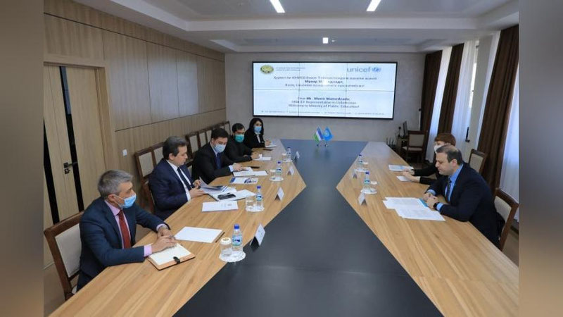 Министр народного образования Шерзод Шерматов и глава Представительства Детского фонда ООН (ЮНИСЕФ) в Узбекистане Мунир Мамедзаде обсудили значимость проекта.