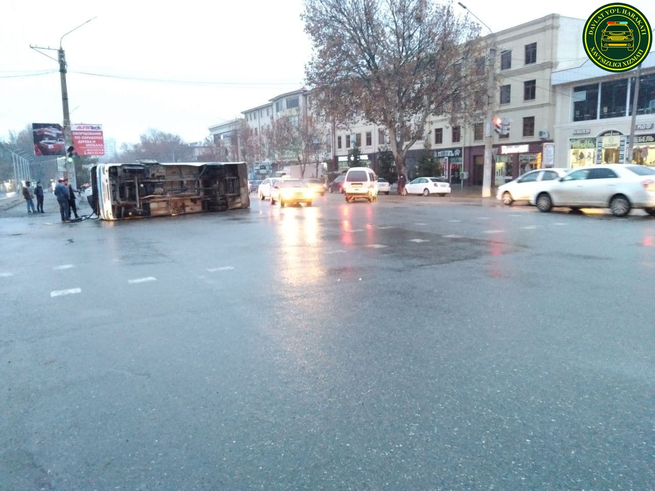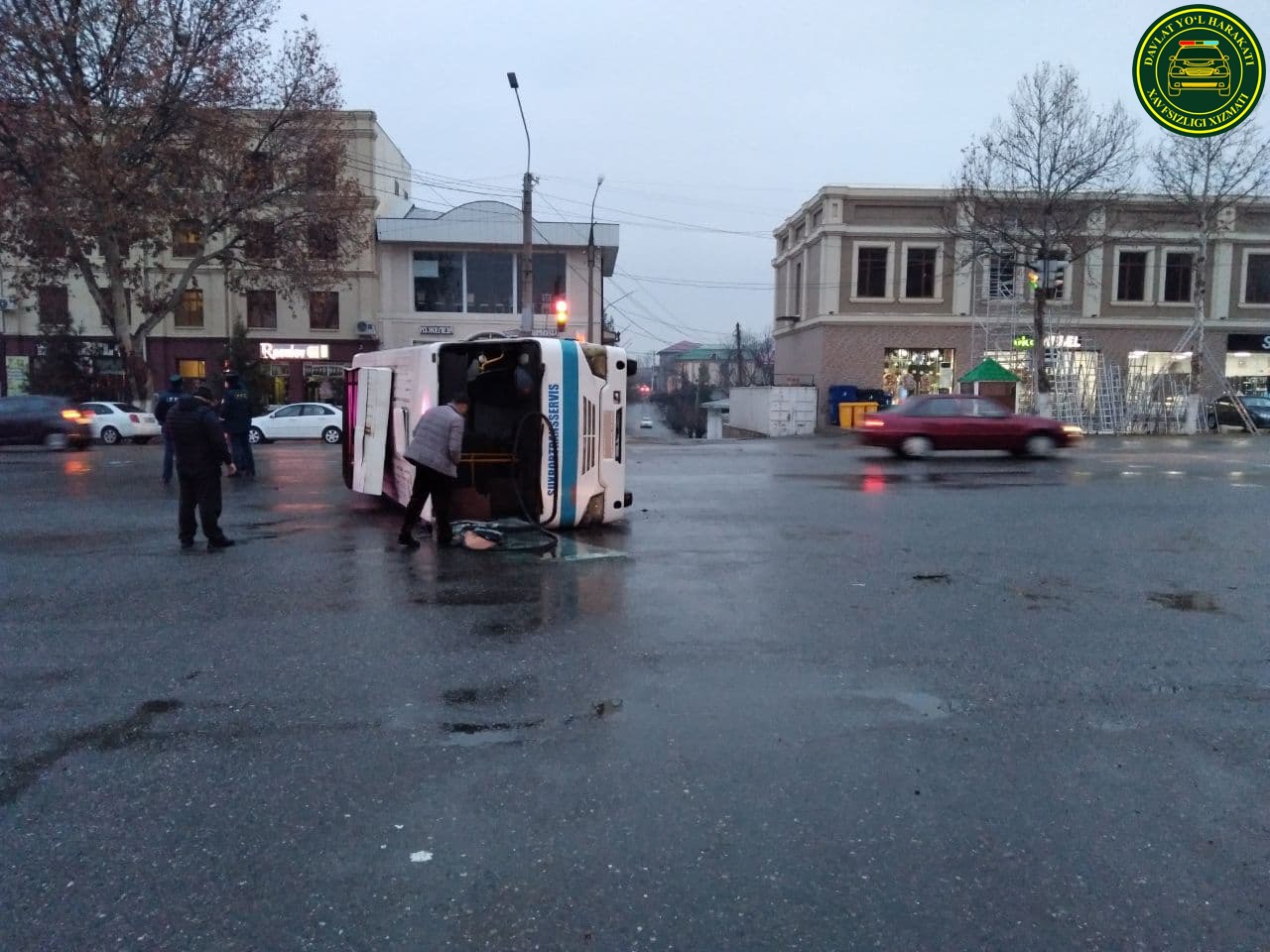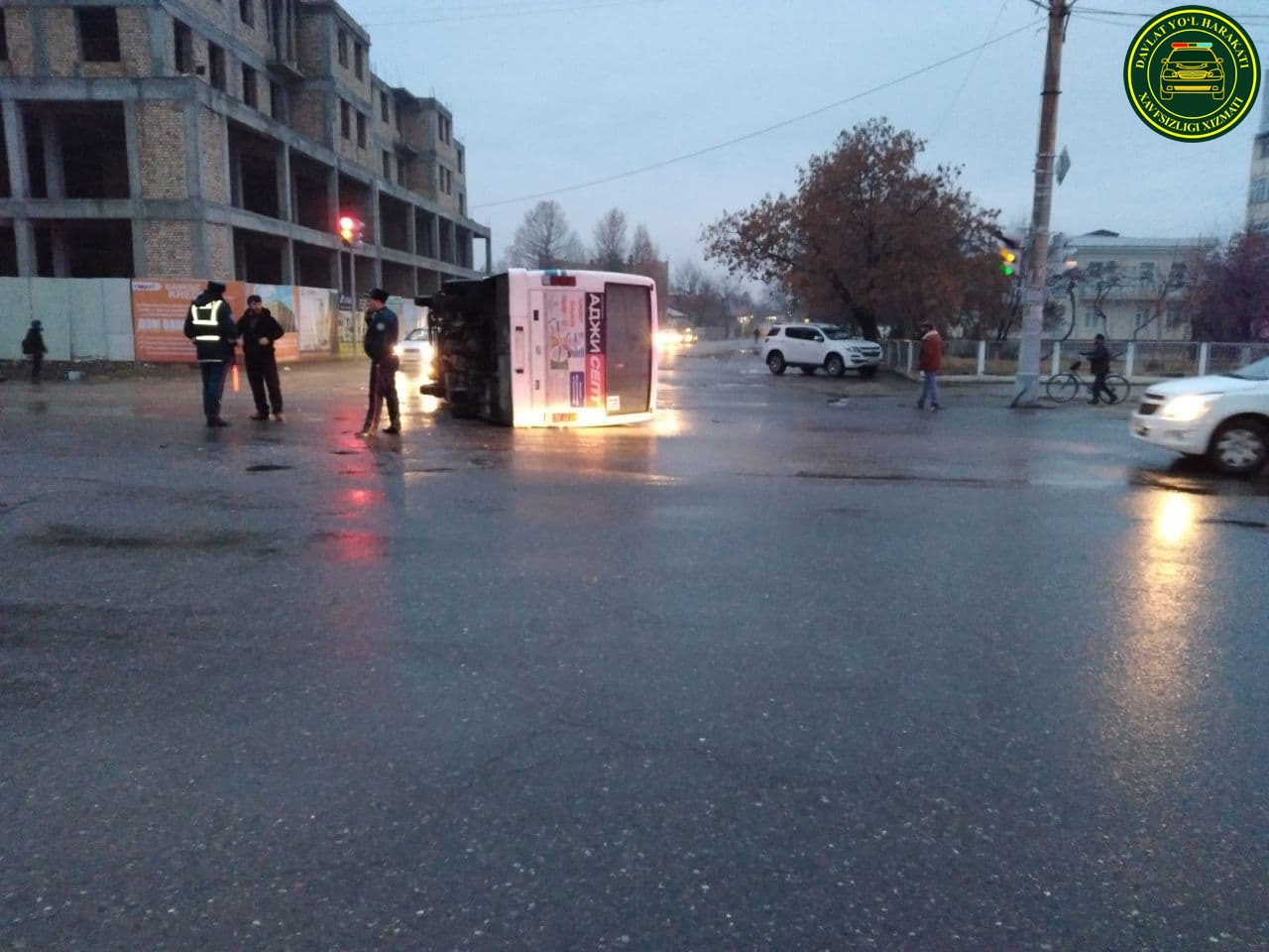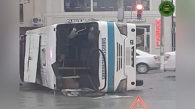 26 декабря в 05:30 на пересечении улиц Гагарина и Фитрата в Самарканде пассажирский автобус столкнулся с «Нивой» и опрокинулся.