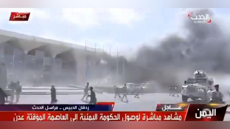 Сообщается, что взрыв произошел вскоре после того, как в аэропорту приземлился самолет, на борту которого находились члены нового йеменского правительства.