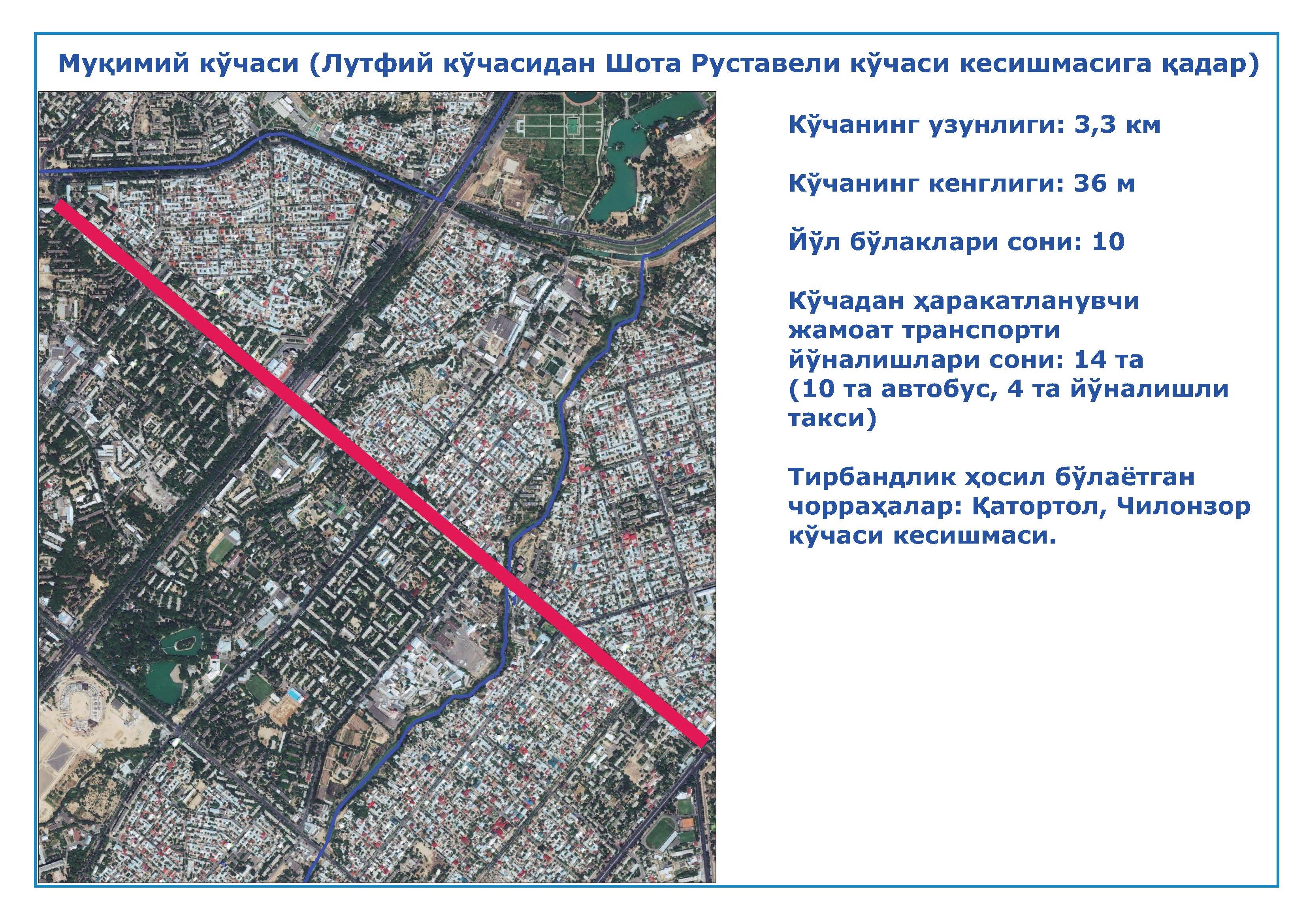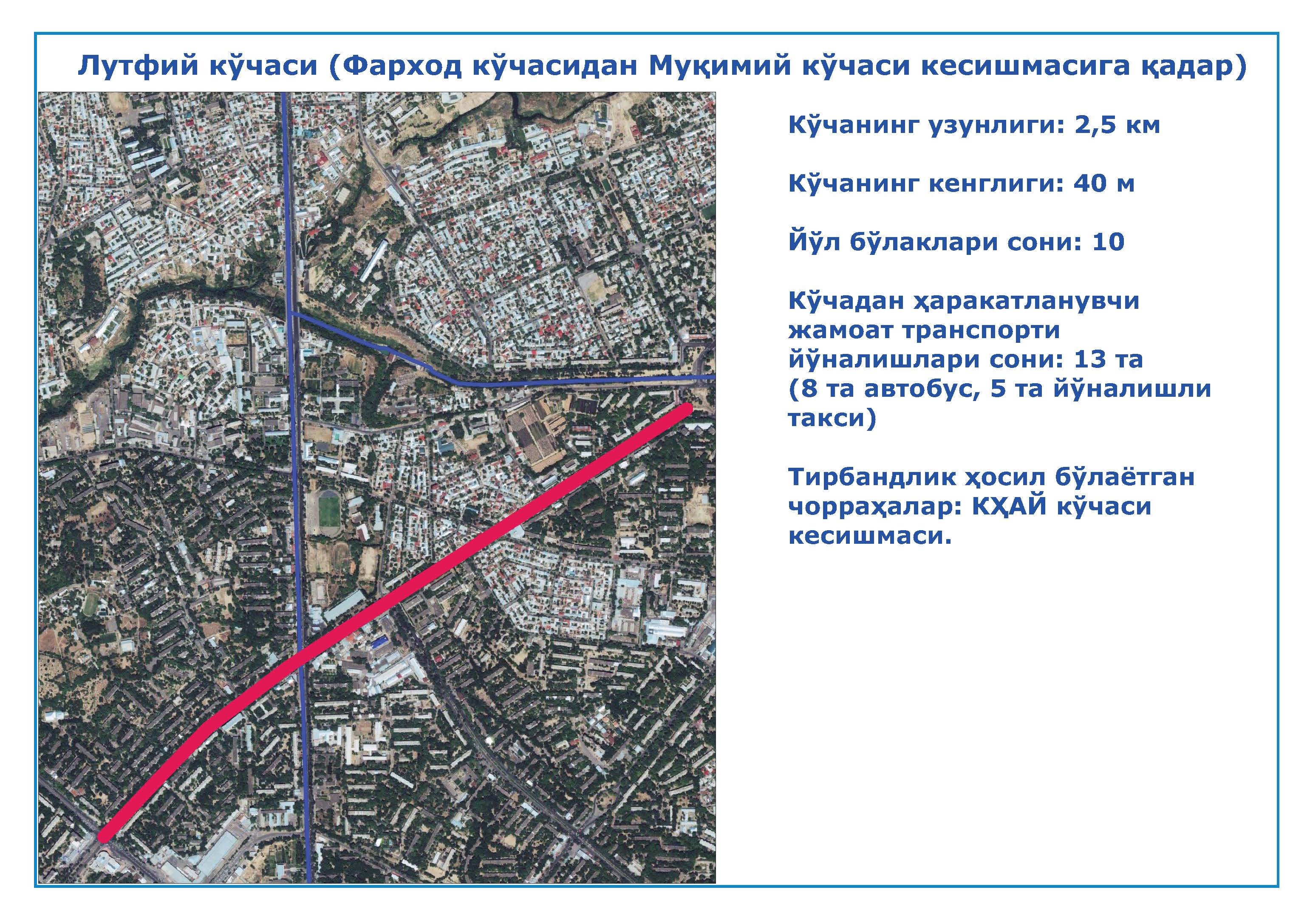 5. Улица Лутфий (улица Фарход кўчасидан – пересечение улицы Муқимий);