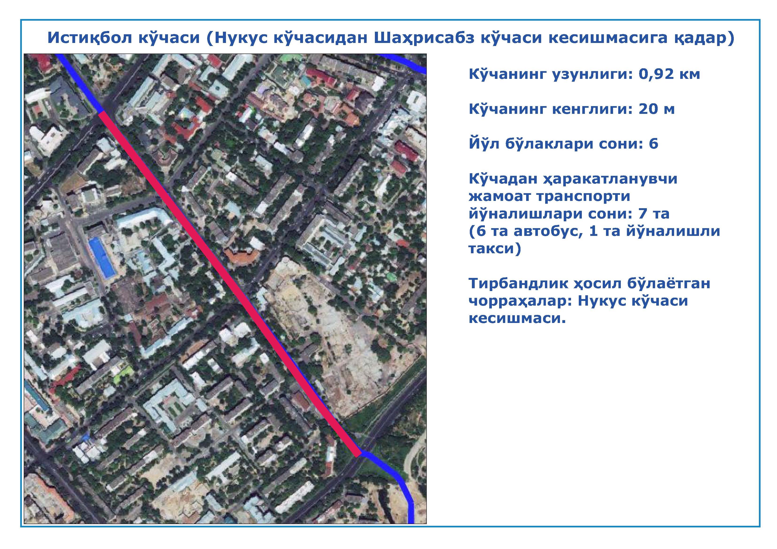 8. Улица Истиқбол (улица Нукус – пересечение улицы Шаҳрисабз);