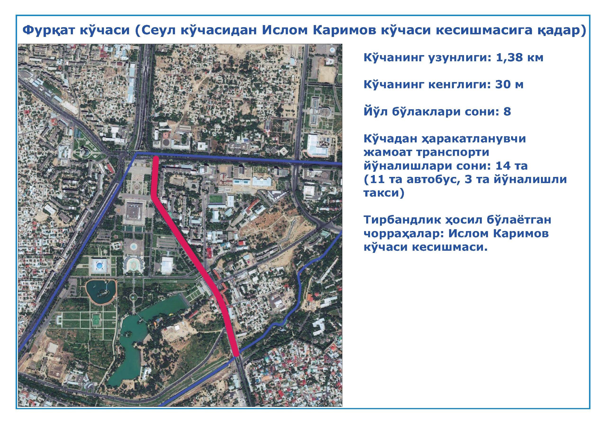 2. Улица Фурқат (улица Сеул – пересечение улицы Ислома Каримова);