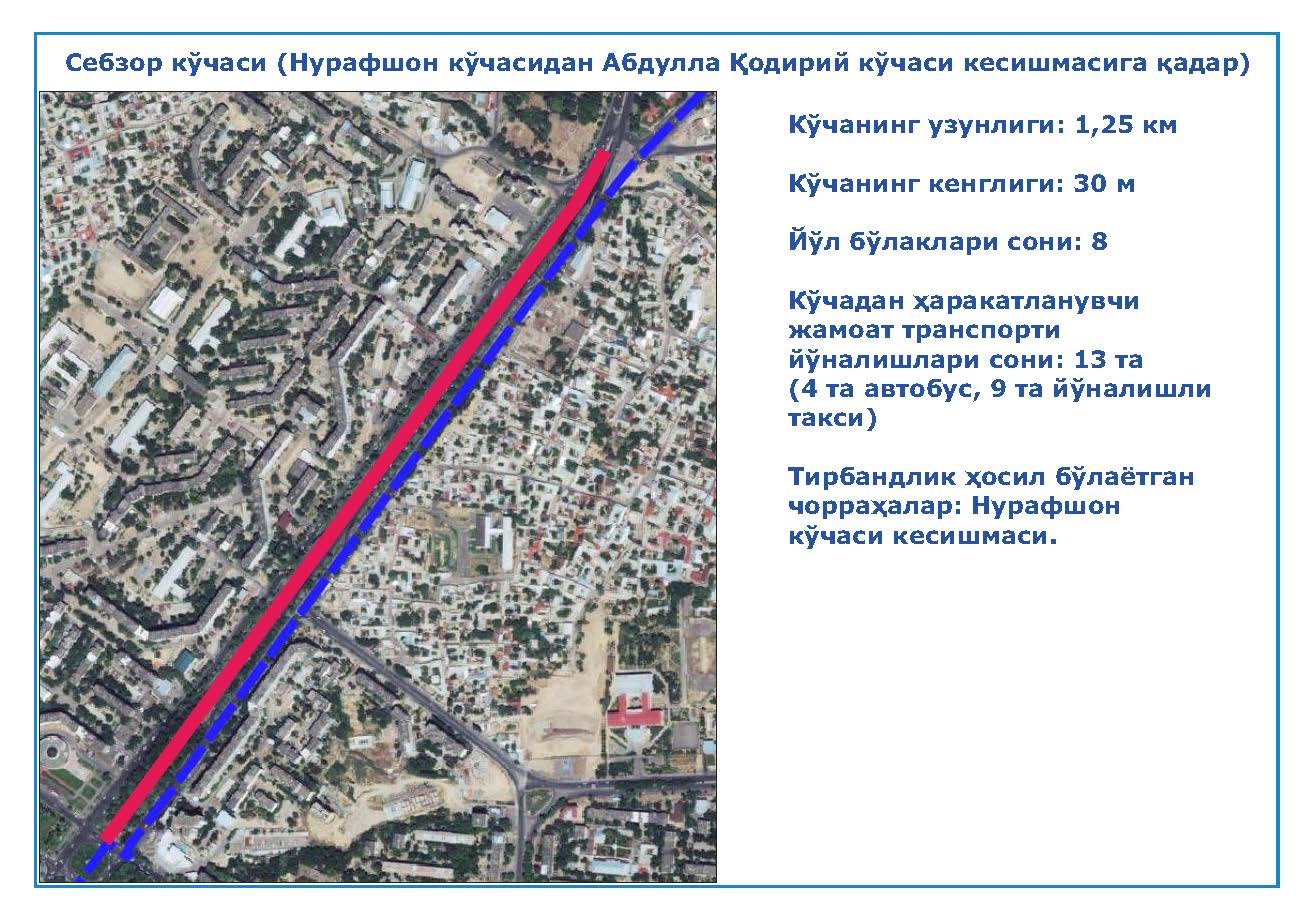 10. Улица Себзор (улица Нурафшон - пересечение улицы А.Қодирий)