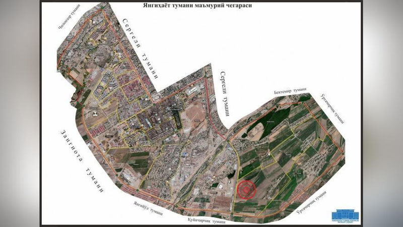 Согласно документу, он разместится на земельном участке площадью 210 гектаров за счет земельных площадей сельхозназначения, расположенных на территории, прилегающей к махаллям «Хужа Учкун», «Жалойик» и «Гулзор» Янгихаётского района.