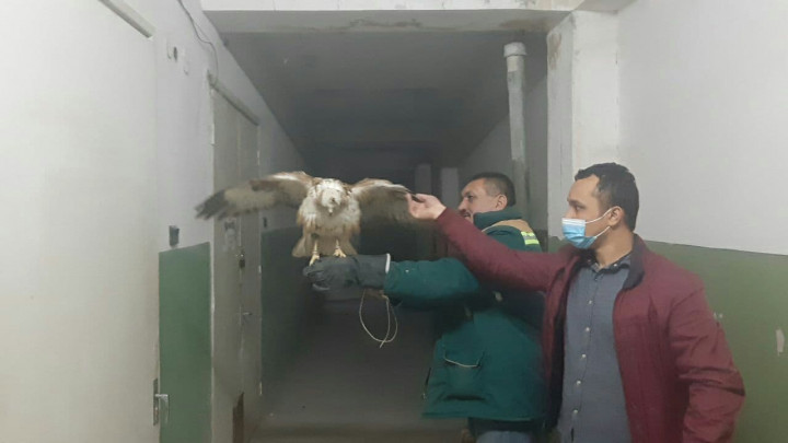 Оказалось, что это степной орел. На место прибыли инспекторы Госкомэкологии, которые при помощи специального оборудования вытащили хищную птицу и передали администрации Ташкентского зоопарка.