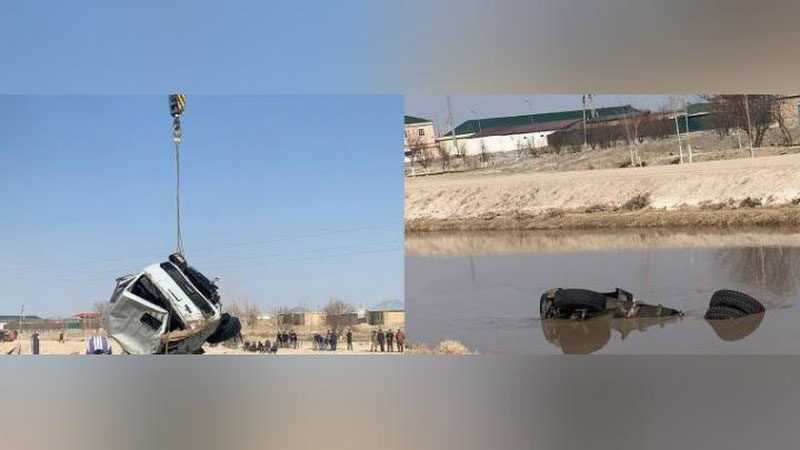 3 марта в Бухарской области водитель грузовика потерял управление и съехал в канал.