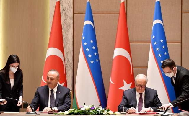 После завершения заседания Группы по стратегическому планированию главы внешнеполитических ведомств двух стран подписали Программу сотрудничества между министерствами иностранных дел Узбекистана и Турции на 2022-2023 годы и Меморандум о взаимопонимании в сфере переводческих услуг.