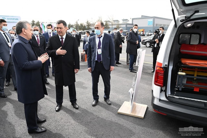 От имени народа Узбекистана Кыргызстану переданы в дар машины скорой медицинской помощи, производимые в нашей стране. Садыр Жапаров выразил признательность за приверженность узам братства и отношениям добрососедства, оказываемую Узбекистаном постоянную помощь и поддержку.