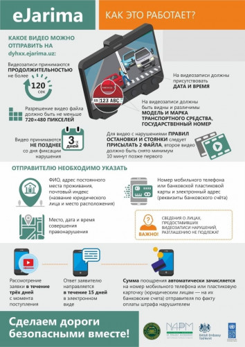 В ГУБДД МВД Узбекистана назвали 8 причин, по которым могут отклонить представленное видео о нарушениях ПДД на сайт eJarima.