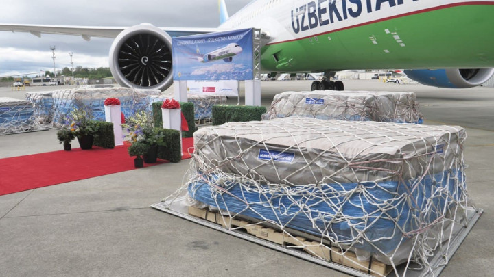 Шестой Boeing -787 прибыл в Узбекистан перегоночным рейсом с третьей партией гуманитарной помощи в рамках борьбы с распространением SARS COVID-2, в дальнейшем гуманитарный груз будет передан регион Аральского моря. Акция организована американской благотворительной организацией «Project C.U.R.E.» при содействии посольства Узбекистана в Вашингтоне. Гуманитарный груз состоит из десяти 40-футовых контейнеров, содержащих медицинские принадлежности, оборудование, мобильные аппараты ИВЛ на общую сумму 3 миллиона долларов.